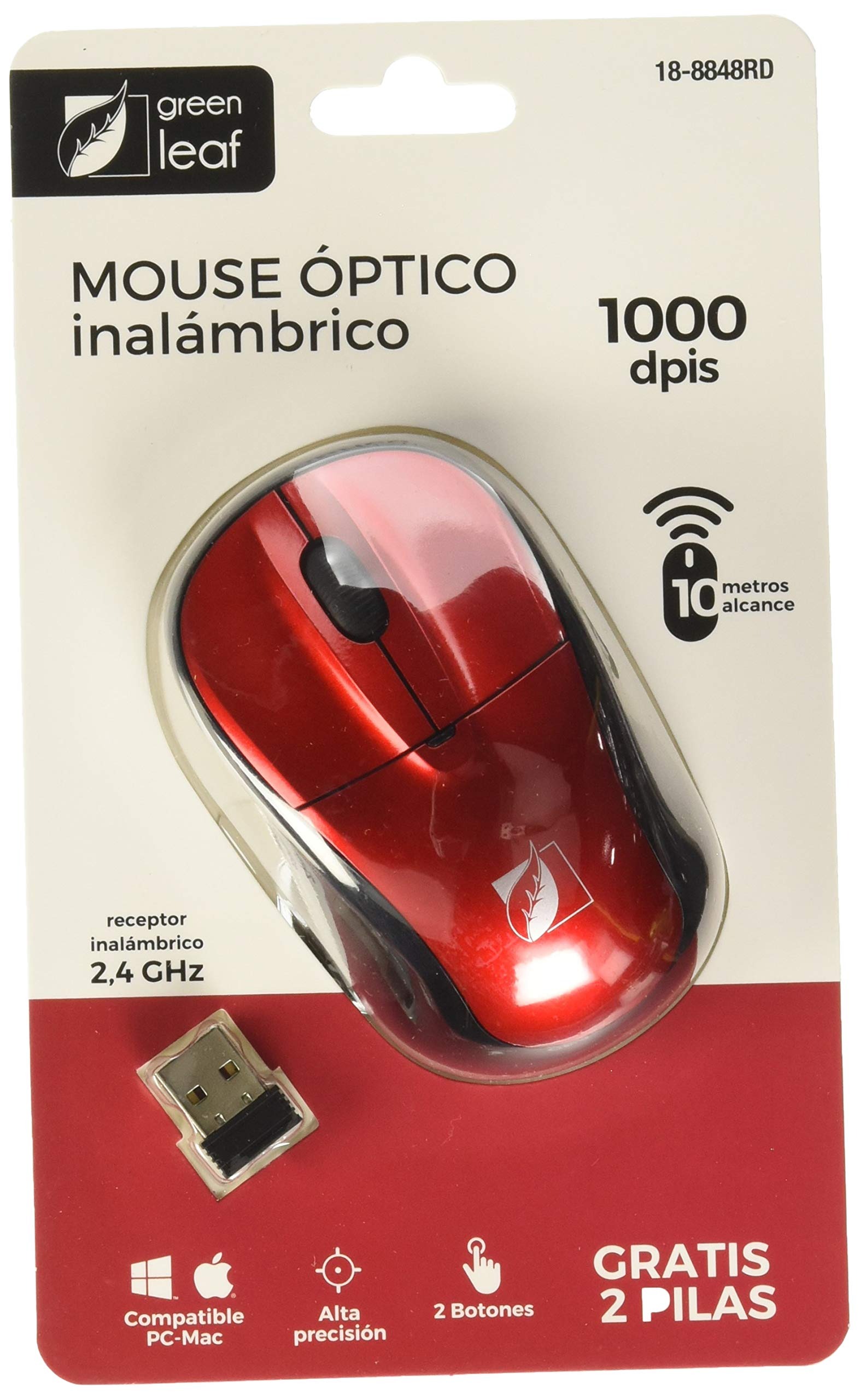 MOUSE INALAMBRICO GREEN LEAF 2.4. ROJO