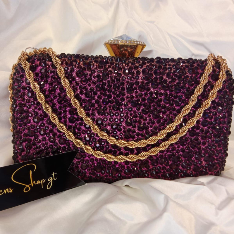 Bolsa de fiesta morada con dorado y brillantes